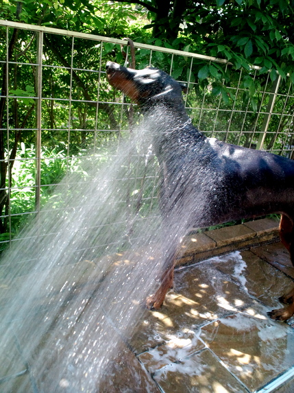 ホースの水も冷たくないけど、なんとも気持ち良さそうなのです。